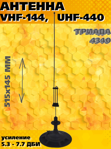 Антенна представляет собой вертикальный четвертьволновый вибратор в диапазоне VHF и 2-элентную коллинеарную решётку в диапазоне UHF.