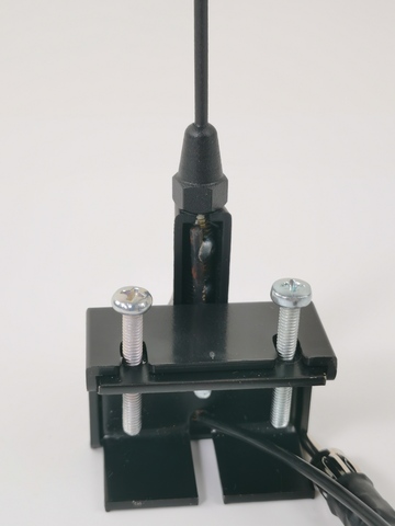 Принцип работы: Антенна основана на классической структуре укороченный полуволновой вибратор. Крепление на струбцине (винтами к желобку), быстро устанавливается и снимается.