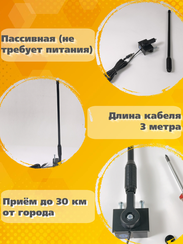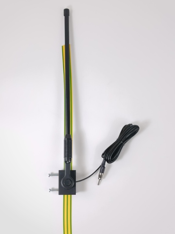 Принцип работы: Антенна основана на классической структуре укороченный полуволновой вибратор. Крепление на струбцине (винтами к желобку), быстро устанавливается и снимается.