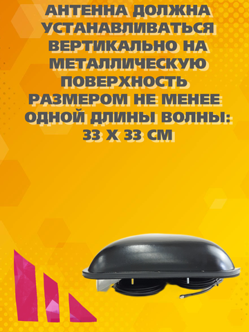 Исполнение корпуса брызгозащищённое IP54. Возможна дополнительная защита и исполнение по ТЗ заказчика. Антенна должна устанавливаться вертикально на металлическую поверхность размером не менее одной длины волны - 33 х 33 см (крышу автомобиля, GSM-терминала…), по возможности в её центре, чтобы не искажалась диаграмма направленности. Наличие посторонних предметов допустимо не ближе 10 см от антенны.