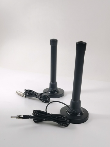 Похожи на антенны "Пелена". Комплект из двух антенн. Устанавливаются парой в задней части крыши автомобиля. Одна антенна с радиоштекером, другая с телевизионным МОНО 3,5мм.