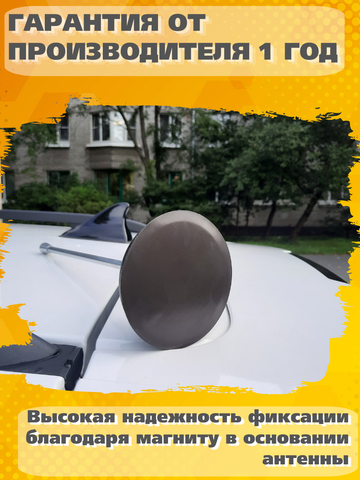 Муляж антенны спецсвязи на магнитном креплении к крыше. На супермагните диаметром 76 мм, прочное крепление к крыше на скорости до 90 км/ч. (за исключением случаев резкого торможения или воздушных ударов от встречных фур).