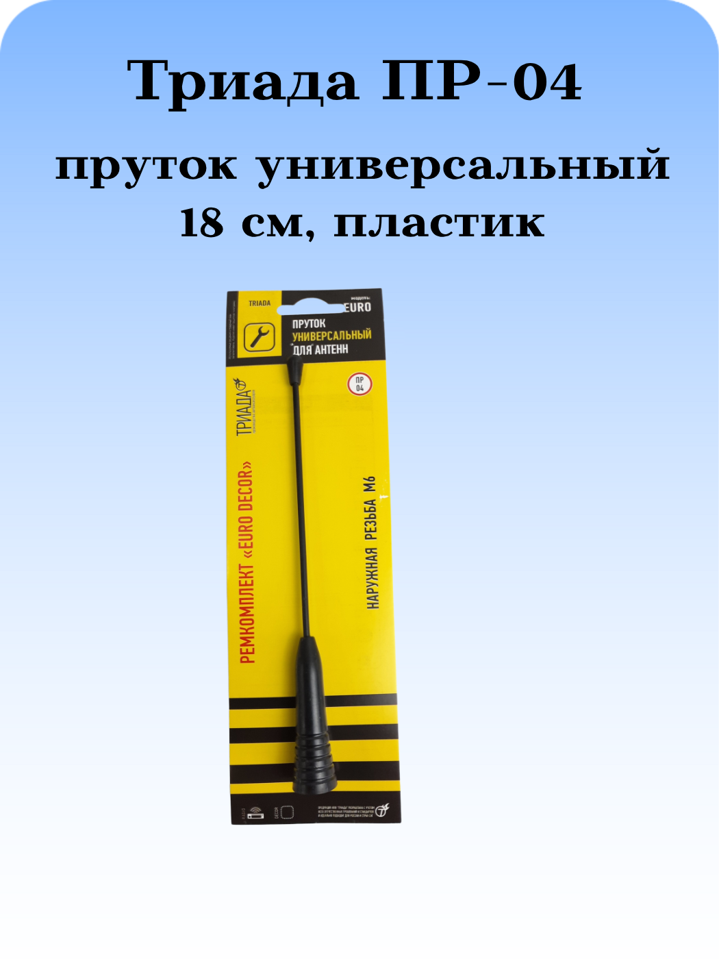 Такой пруток необходим, если штатный штырь потерялся, поломался при въезде в гараж или если его открутили от Вашей антенны "пионеры". Также используется для внешнего тюнинга автомобиля. Выпускается с наружной резьбой М6 и переходником для наружной резьбы м5-м5.